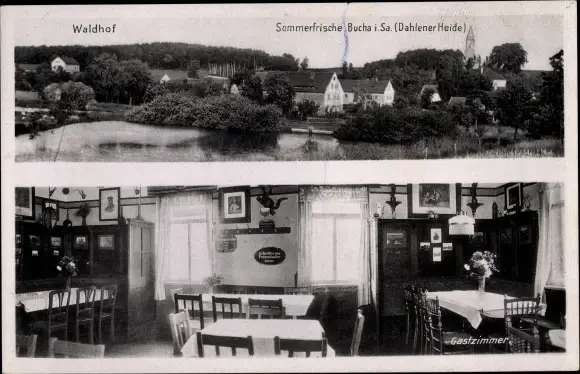 Ak Bucha Dahlen in Sachsen, Gasthof Waldhof, Inh. J. Schubert, Panorama