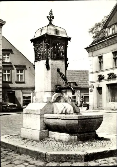 Ak Buckow in der Märkischen Schweiz, Brunnen am Markt