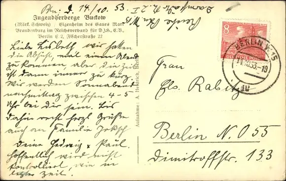Ak Buckow in der Märkischen Schweiz, Jugendherberge, Vorderansicht