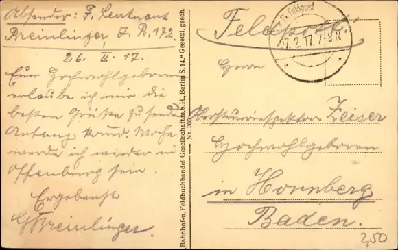 Zustand, siehe Scan, gelaufen, 1917 - ca 14 cm X 9 cm