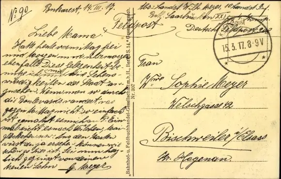 Zustand, siehe Scan, gelaufen, 1917 - ca 14 cm X 9 cm