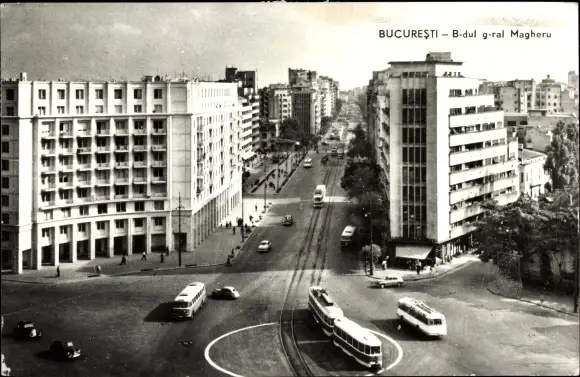 Ak București Bukarest Rumänien, Bulevardul General Magheru, Straßenbahn