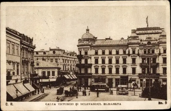 Ak București Bukarest Rumänien, Calea Victoriei si Bulevardul Elisabeta