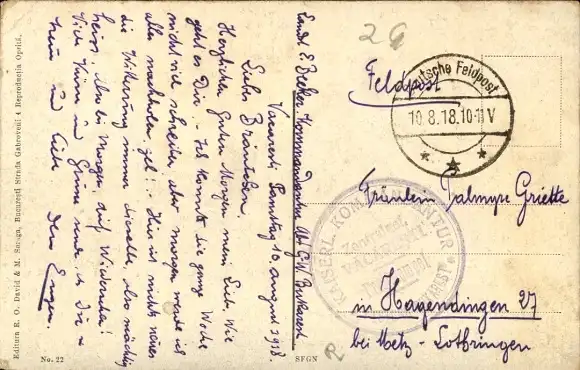 Zustand, siehe Scan, gelaufen, 1918 - ca 14 cm X 9 cm