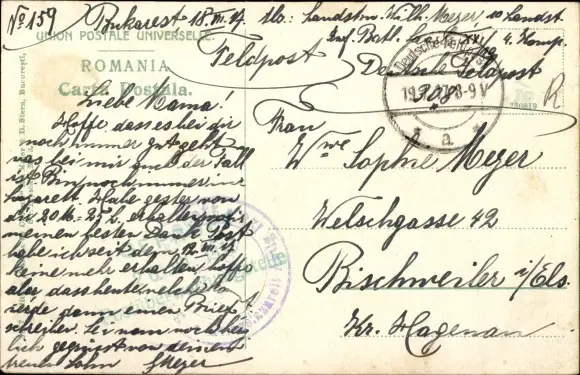 Zustand, siehe Scan, gelaufen, 1917 - ca 14 cm X 9 cm