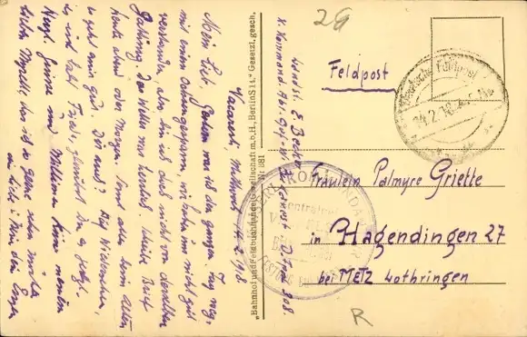 Zustand, siehe Scan, gelaufen, 1918 - ca 14 cm X 9 cm