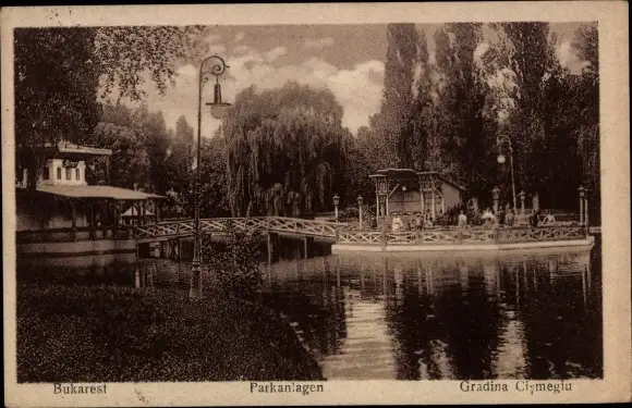 Ak București Bukarest Rumänien, Parkanlagen, See