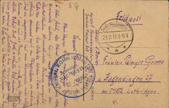 Zustand, siehe Scan, gelaufen, 1917 - ca 14 cm X 9 cm