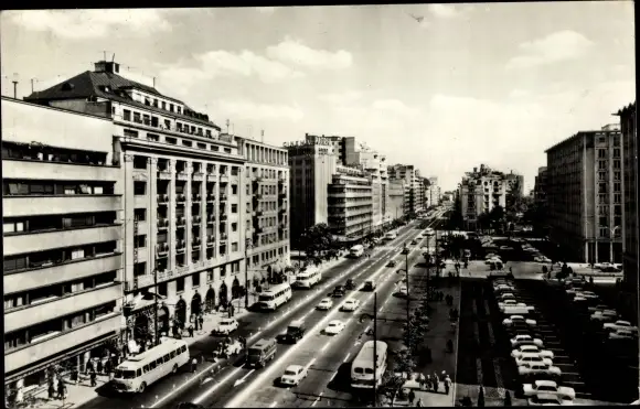 Ak București Bukarest Rumänien, Straße aus Vogelschau, Verkehr