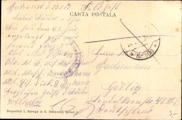 Zustand, siehe Scan, gelaufen, 1917 - ca 14 cm X 9 cm