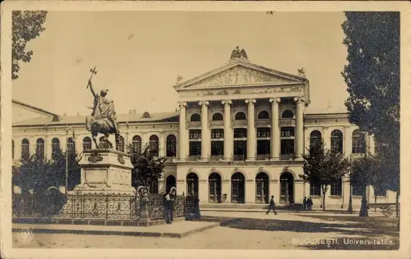 Ak București Bukarest Rumänien, Universität mit Denkmal