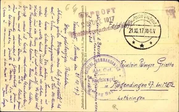 Zustand, siehe Scan, gelaufen, 1917 - ca 14 cm X 9 cm