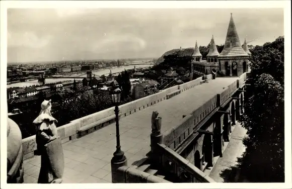 Ak Budapest Ungarn, Fischerbastei, Statue