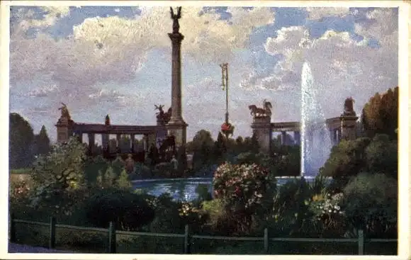 Ak Budapest Ungarn, Milleniums Denkmal, Springbrunnen