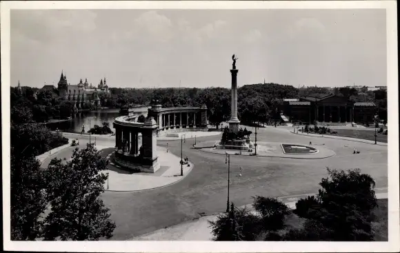 Ak Budapest Ungarn, Milleniums-Denkmal, Stadtwäldchen-Teich, Schloss Vajda-Hunyad