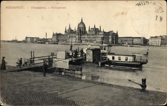 Ak Budapest Ungarn, Parlament, Boot, Fluss