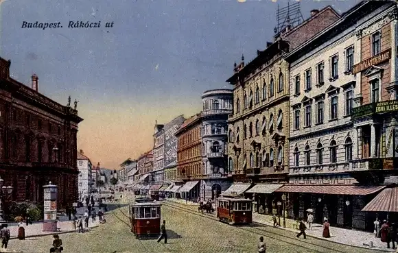 Ak Budapest Ungarn, Rakoczi ut, Straßenbahnen