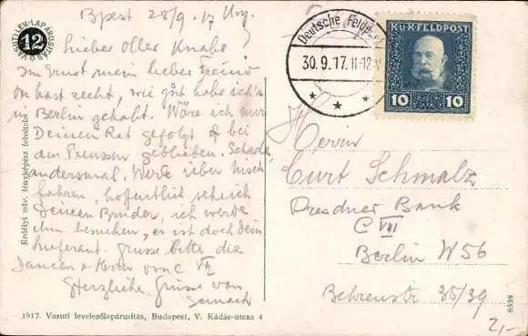 Zustand, siehe Scan, gelaufen, 1917 - ca 14 cm X 9 cm