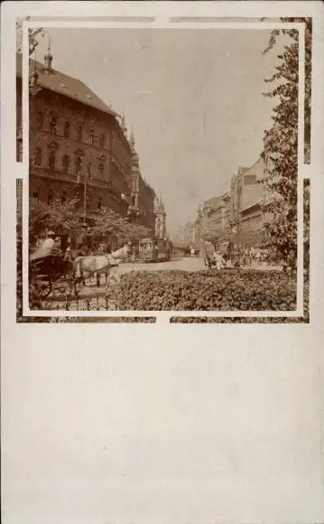 Ak Budapest Ungarn, Straßenpartie, Straßenbahn