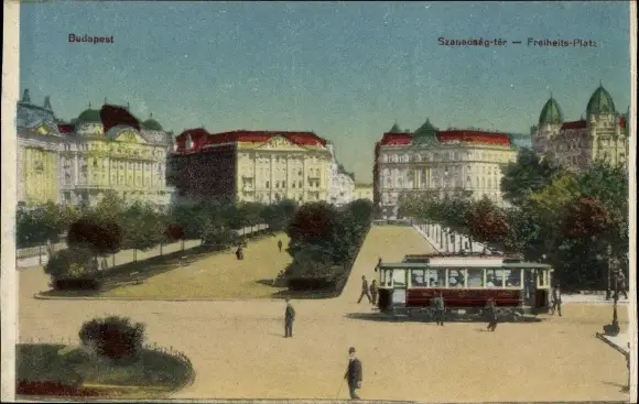 Ak Budapest Ungarn, Szabadség tér, Freiheitsplatz, Straßenbahn
