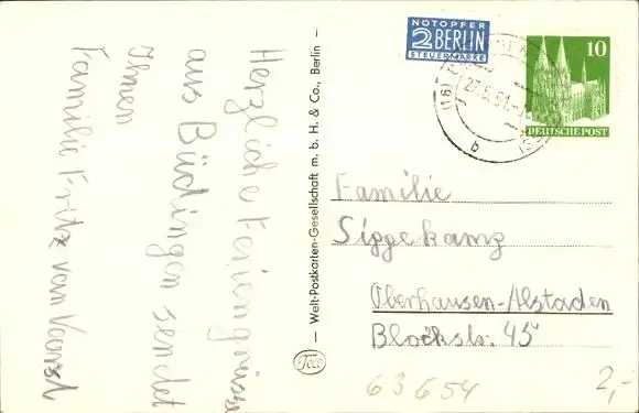 Zustand, siehe Scan, gelaufen, 1951 - ca 5 cm X 3 cm