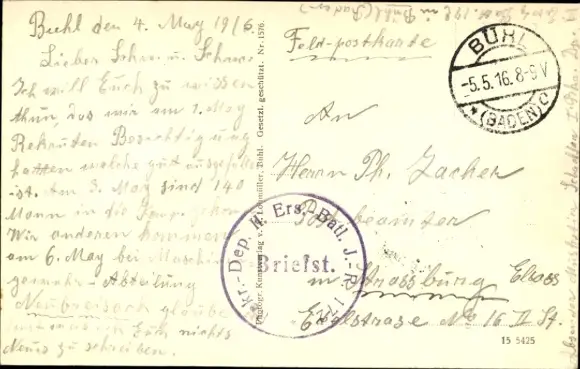 Zustand, siehe Scan, gelaufen, 1916 - ca 14 cm X 9 cm