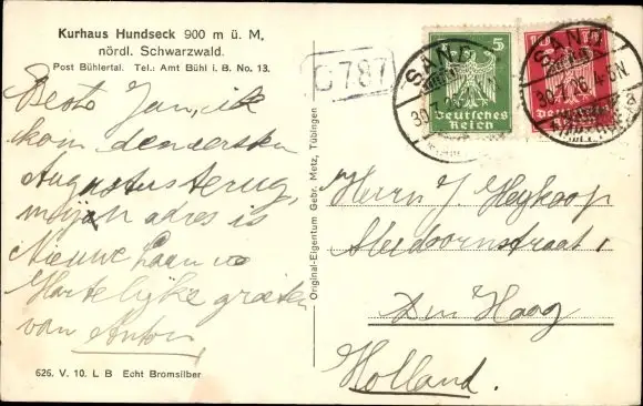 Zustand, siehe Scan, gelaufen, 1926 - ca 14 cm X 9 cm