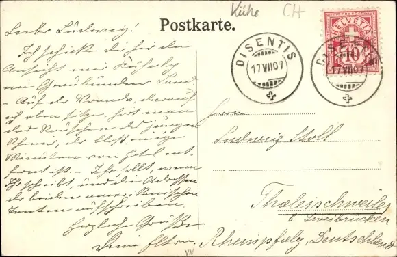 Zustand, siehe Scan, gelaufen, 1907 - ca 14 cm X 9 cm