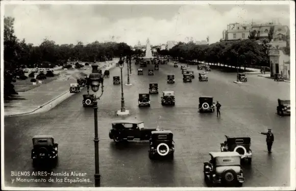 Ak Buenos Aires, Argentinien, Alvear Avenue und Denkmal der Spanier