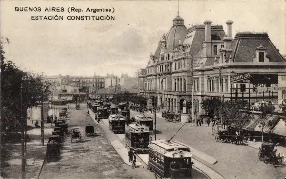 Ak Buenos Aires Argentinien, Estacion Constitucion, Straßenbahn