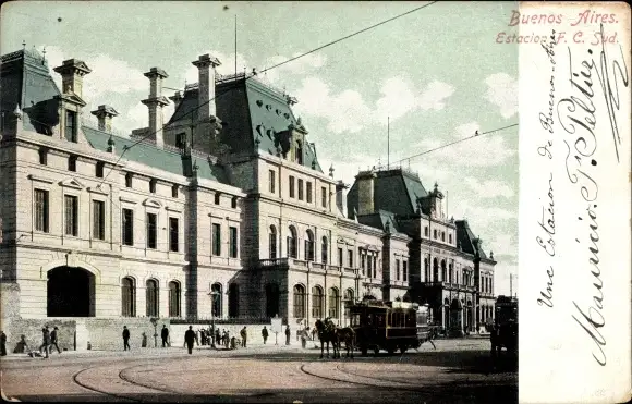 Ak Buenos Aires Argentinien, Estacion F. C. Sud, Pferdebahn