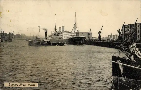 Ak Buenos Aires Argentinien, Hafen, Dampfschiff