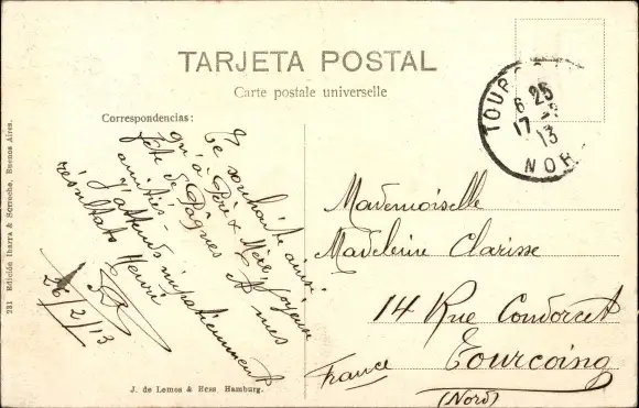 Zustand, siehe Scan, gelaufen, 1913 - ca 14 cm X 9 cm