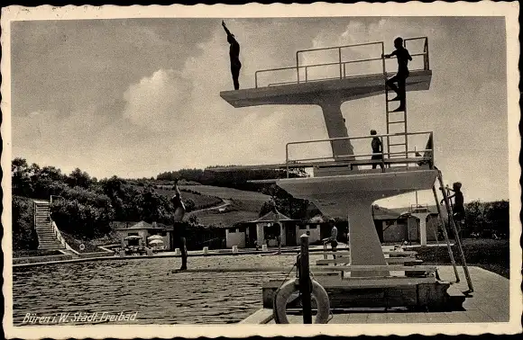 Ak Büren in Westfalen, Freibad, Sprungturm