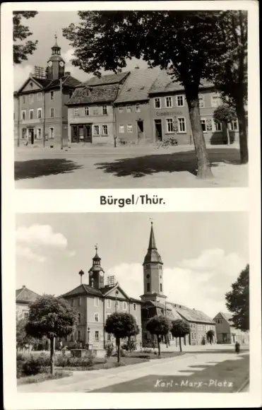 Ak Bürgel in Thüringen, Gambrinus, Karl Marx Platz