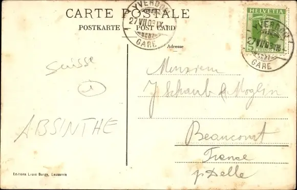 Ak Bürgerkrieg in der Schweiz, vermenschlichte Absinthflaschen