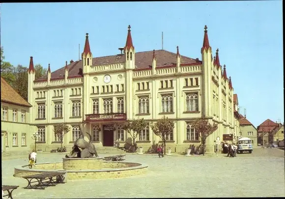 Ak Bützow in Mecklenburg, Rathaus, Brunnen