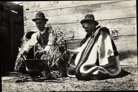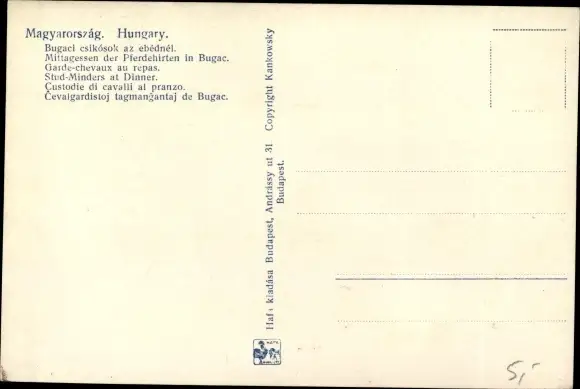 Ak Bugac Ungarn, Mittagessen der Pferdehirten, Volkstrachten