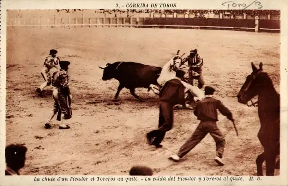 Ak Bullfight, The Fall of the Picador und Bullfighters on the Move