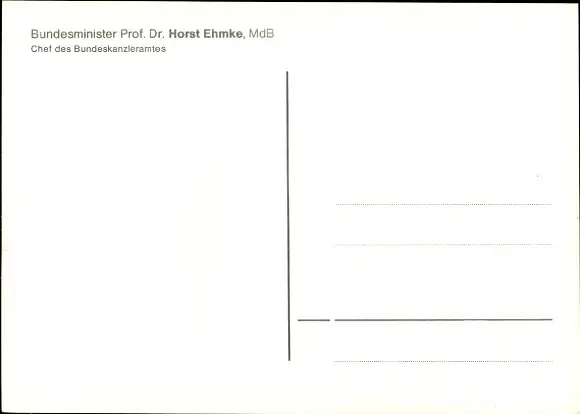 Ak Bundesminister Horst Ehmke, MdB, Chef des Bundeskanzleramtes, Autogramm