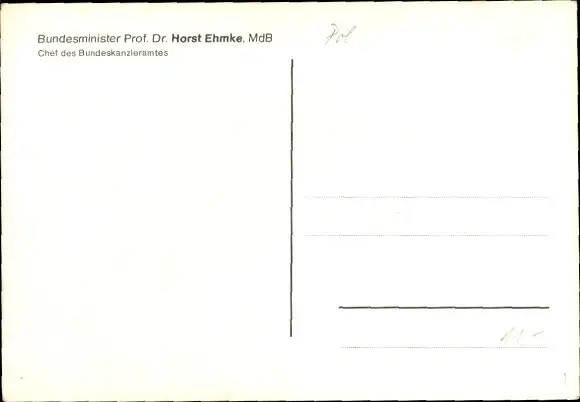 Ak Bundesminister Horst Ehmke, MdB, Chef des Bundeskanzleramtes, Autogramm