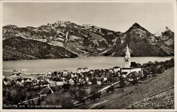 Ak Buochs Kt Nidwalden Schweiz, Gesamtansicht, Vierwaldstättersee