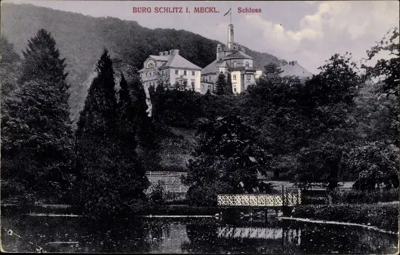 Ak Burg Schlitz Hohen Demzin in Mecklenburg, Schloss, See