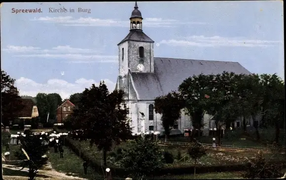 Ak Burg Spreewald, Blick in den Ort auf die Kirche