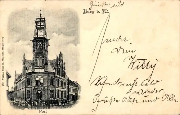 Ansichtskarte, Postkarte, Postamt, Post, Hauptpost, Postkasten, Briefkasten