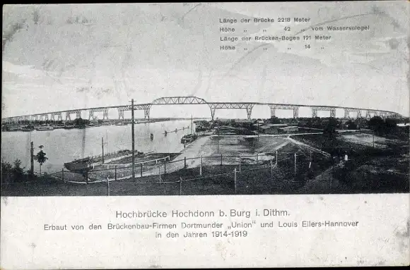 Zustand, siehe Scan, gelaufen- erbaut von Brückenbau Firmen Dortmunder Union und Louis Eilers-Hannover, 1914-1919 - ca 14 cm X 9 cm