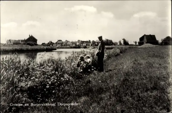 Ak Burgervlotbrug, Ortsansicht, Mann in Uniform