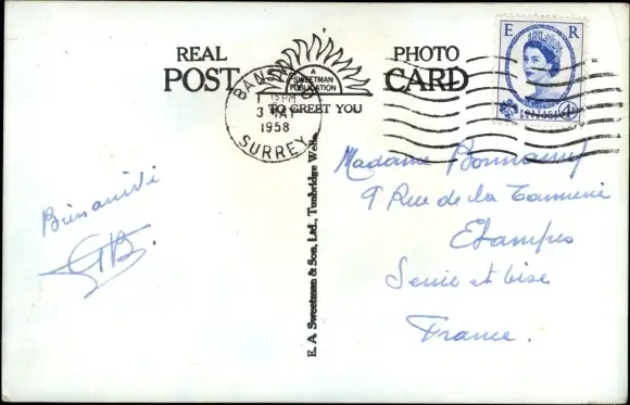 Zustand, siehe Scan, gelaufen, 1958 - ca 14 cm X 9 cm
