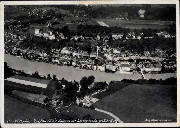 Ak Burghausen an der Salzach Bayern, Fliegeraufnahme vom Ort