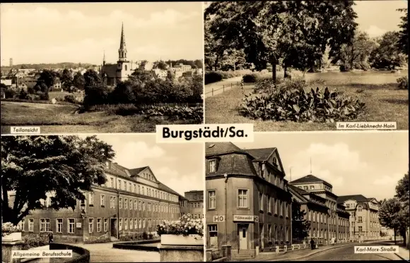 Ak Burgstädt in Sachsen, Karl-Marx-Straße, Allgemeine Berufsschule, Karl-Liebknecht-Hain